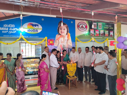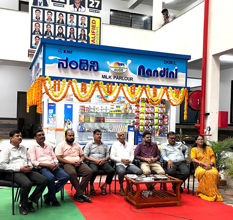 Shri Sumanth Kumar Jain, President, Excel Group of institutions who lit the lamp on this auspicious occasion appreciated saying that Nandini is offering quality products to its consumers and is one of the trustworthy organizations. DKMUL Directors Shri Sucharith Shetty, H. Prabhakar, Smt. Mamatha R Shetty, Managing Director of DKMUL Vivek D., Sachin C, Assistant Manager, Marketing, Dr. Prajwal, Principal-Excel PU College were also present during the ceremony.