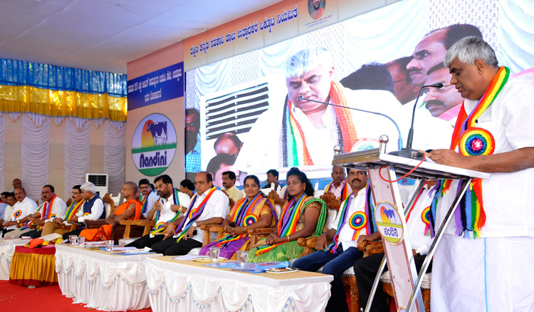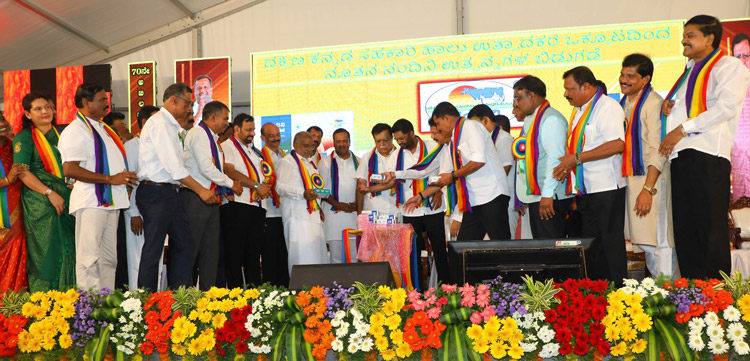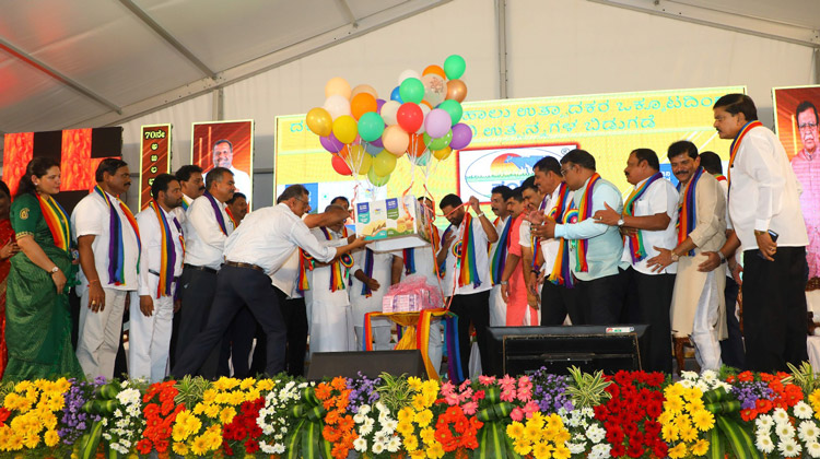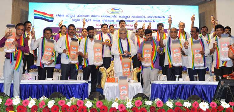 Release of Nandini Healthy Life & 50, 100 ML Ghee in pet Jar on 15-11-2017 during State Level Co-operative Week held at Mangalore.