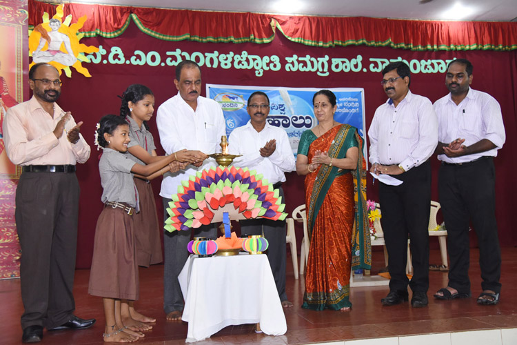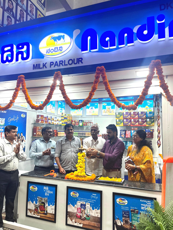 Shri Sumanth Kumar Jain, President, Excel Group of institutions who lit the lamp on this auspicious occasion appreciated saying that Nandini is offering quality products to its consumers and is one of the trustworthy organizations. DKMUL Directors Shri Sucharith Shetty, H. Prabhakar, Smt. Mamatha R Shetty, Managing Director of DKMUL Vivek D., Sachin C, Assistant Manager, Marketing, Dr. Prajwal, Principal-Excel PU College were also present during the ceremony.